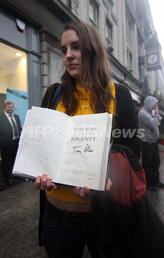【9月6日 AFP】アイルランド・ダブリン(Dublin)の書店で4日、英国のトニー・ブレア(Tony Blair)元首相の回顧録「A Journey(旅)」のサイン会が行われ、元首相に抗議する活動家ら200人あまりがペットボトルや生卵を投げるなど、周辺は一時騒然となった。