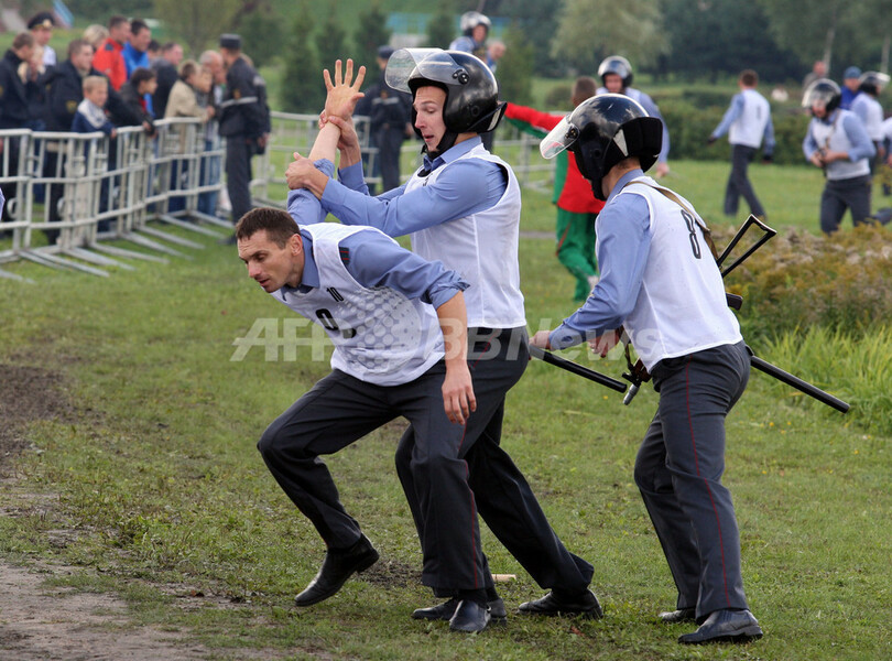 ニュース ライフ こぼれ話 警察官のスポーツ大会、ベラルーシ 2010年9月7日 19:11 発信地:ミンスク/ベラルーシ [ ロシア・CIS ベラルーシ ] このニュースをシェア ‹ › ❮ 2/4 ❯ ベラルーシ・ミンスク(Minsk)で、警察官や警察犬が参加して開催されたスポーツ大会のひとこま(2010年9月4日撮影)。(c)AFP/ALEXEY GROMOV 画像作成中 ! 【9月7日 AFP】ベラルーシ・ミンスク(Minsk)で4日、警察官や警察犬が参加してスポーツ大会が開催された。(c)AFP ライフ 一覧へ> メディア・報道関係・法人の方向け 写真・動画 購入のお問合せ>