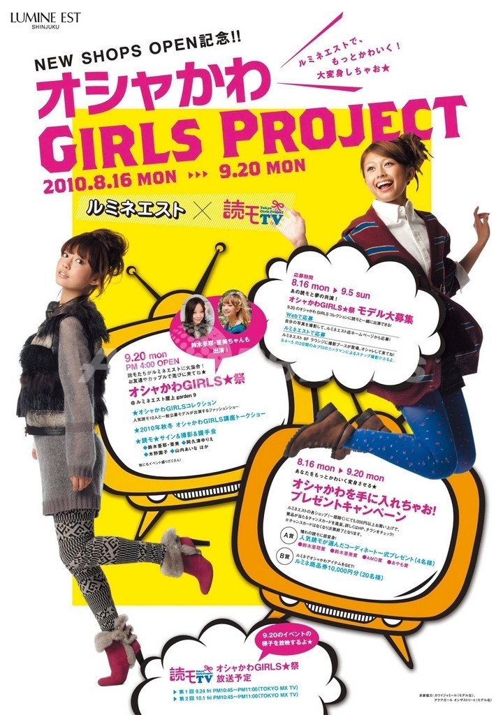 【9月9日 senken h】ニューショップが続々オープンするルミネエストでは、人気読者モデルをフィーチャーしたキャンペーンを9月20日までを開催。5000円以上の購入で読モが選んだコーディネートなどを抽選でゲットできる。9月20日には屋上にて鈴木亜耶・亜美ちゃんなど人気読モが出演するイベント「オシャかわGIRLS★祭」を開催。ショーに出演できる一般モデルも募集中。ウェブや館内チラシを参照。(c)senken h