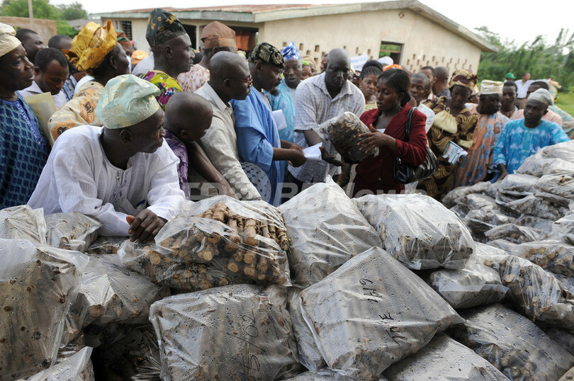 国連食糧農業機関(Food and Agriculture Organization、FAO)によると、ナイジェリアは08年のキャッサバ生産量が4460万トンと世界一だが、ナイジェリアでは生産したキャッサバを主に国内で消費している。キャッサバの輸出が世界一多いのはタイだ。(c)AFP/Aderogba Obisesan