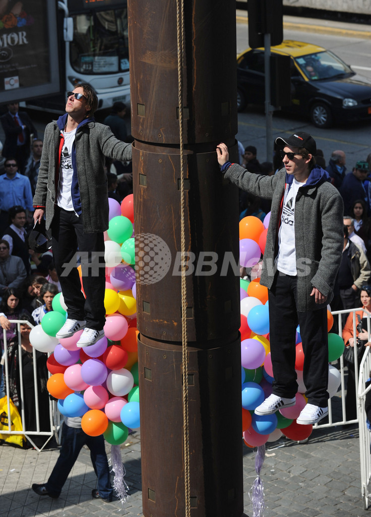 【9月13日 AFP】18日に建国200周年を迎えるチリの首都サンティアゴ(Santiago)で9日、同国出身の手品デュオ「マジック・ツインズ(Magic Twins)」が、200周年にかけて200分間宙に浮くイリュージョン・パフォーマンスを披露した。(c)AFP