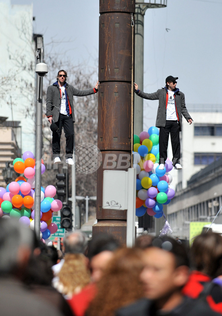 【9月13日 AFP】18日に建国200周年を迎えるチリの首都サンティアゴ(Santiago)で9日、同国出身の手品デュオ「マジック・ツインズ(Magic Twins)」が、200周年にかけて200分間宙に浮くイリュージョン・パフォーマンスを披露した。(c)AFP