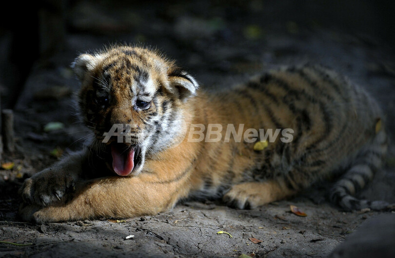 写真は、あくびする生後5日のベンガルトラの赤ちゃん(2010年9月11日撮影)。(c)AFP/Luis ROBAYO