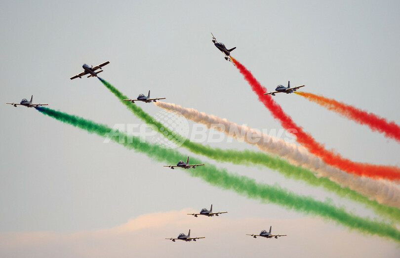 ニュース 政治・経済 結成50周年、伊空軍「フレッチェ・トリコローリ」がアクロバット飛行 2010年9月16日 11:10 発信地:イタリア [ ヨーロッパ イタリア ] このニュースをシェア ‹ › ❮ 5/8 ❯ イタリア空軍のアクロバット飛行隊「フレッチェ・トリコローリ(Frecce tricolori、3色の矢の意)」はイタリア・リボルト(Rivolto)空軍基地で12日、結成50周年を記念する航空ショーでアクロバット飛行を披露した。写真は、リボルト空軍基地上空を飛行する「フレッチェ・トリコローリ」(2010年9月12日撮影)。(c)AFP/CHRISTOPHE SIMON 画像作成中 ! 【9月16日 AFP】イタリア空軍のアクロバット飛行隊「フレッチェ・トリコローリ(Frecce tricolori、3色の矢の意)」はイタリア・リボルト(Rivolto)空軍基地で12日、結成50周年を記念する航空ショーでアクロバット飛行を披露した。(c)AFP 政治・経済 一覧へ> メディア・報道関係・法人の方向け 写真・動画 購入のお問合せ>