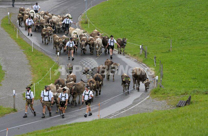 ニュース ライフ ドイツに秋の訪れ、牛が山から里帰り 2010年9月16日 11:58 発信地:ドイツ [ ヨーロッパ ドイツ ] このニュースをシェア ‹ › ❮ 12/14 ❯ ドイツ南部オーバーシュタウフェン村近くのWaltners Alpe山で10日、夏の間、山に放牧されていた牛を村に連れ帰る伝統行事「フィーシャイト(Viehscheid)」が行われた。写真は、牛を追って山道を下る農場主(2010年9月10日撮影)。(c)AFP/CHRISTOF STACHE 画像作成中 ! 【9月16日 AFP】ドイツ南部オーバーシュタウフェン(Oberstaufen)村近くのWaltners Alpe山で10日、夏の間、山に放牧されていた牛を村に連れ帰る伝統行事「フィーシャイト(Viehscheid)」が行われた。(c)AFP ライフ 一覧へ> メディア・報道関係・法人の方向け 写真・動画 購入のお問合せ>