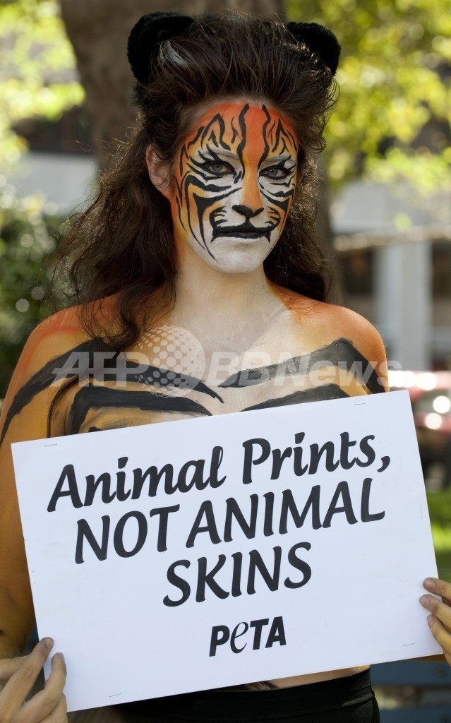 毛皮やめてボディーペイントしましょ!PETA、毛皮産業に抗議