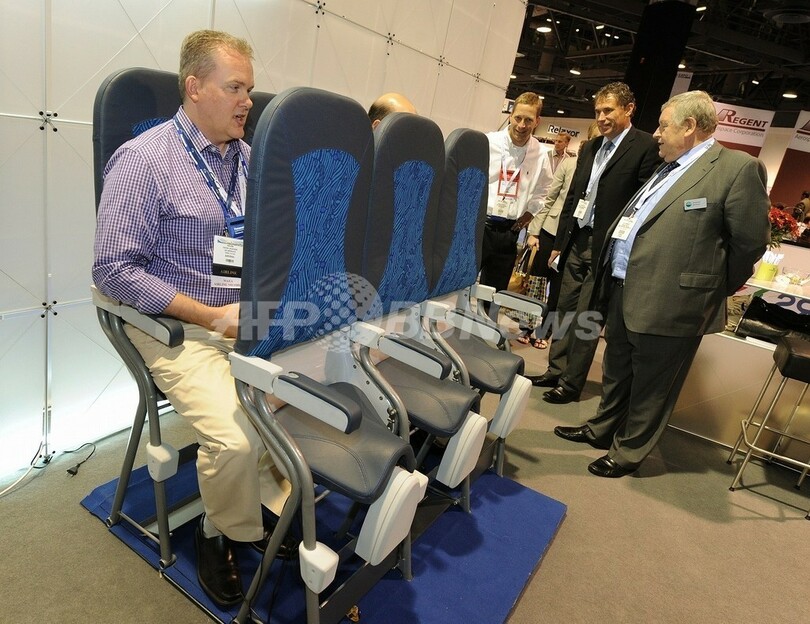 【9月17日 AFP】米カリフォルニア(California)州ロングビーチ(Long Beach)で開催された航空機内装見本市「Aircraft Interiiors Expo Americas」で、伊メーカーがエコノミークラス用に開発した斬新なデザインの座席が展示された。