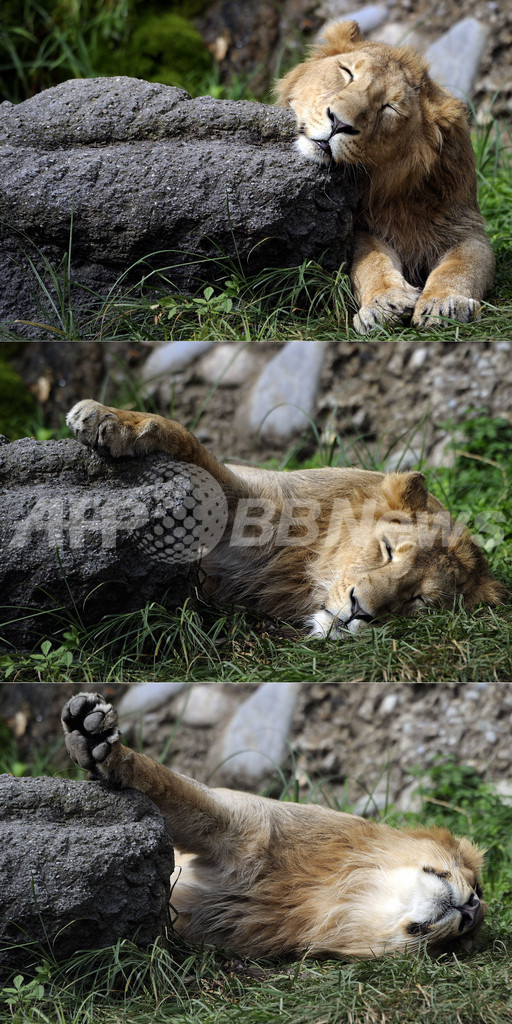 スイス・チューリヒ(Zurich)の動物園で15日、生後2か月のインドライオンの赤ちゃん、クワム(Kuwam)、カリカ(Kalika)、ケラディ(Keladi)、カニャ(Kanya)が一般公開された。写真は、4匹の兄ライオンのジャスラジ(Jasradj、2010年9月15日撮影)。(c)AFP/FABRICE COFFRINI