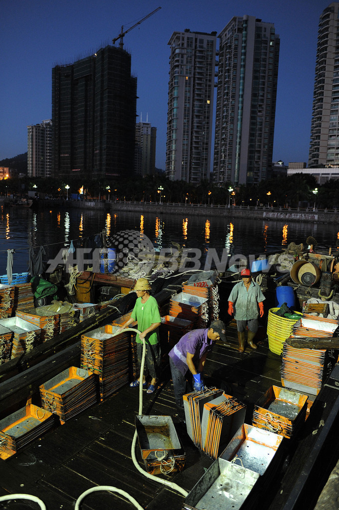 ニュース ライフ 今日も大漁、急成長する中国の水産加工業 2010年9月22日 12:19 発信地:中国 [ 中国・台湾 中国 ] このニュースをシェア ‹ › ❮ 7/11 ❯ 中国各地の漁港では、水産加工産業の好調を背景に、大量の魚類が水揚げされる光景がみられる。公式統計は明らかにされていないが、中国の水産加工品生産量は1993年の280万トンから、2006年には930万トンと急増している。写真は、中国南部広東(Guangdong)省珠海(Zhuhai)の漁港で、水揚げした魚を氷詰めする漁師(2010年9月20日撮影)。(c)AFP 画像作成中 ! 【9月22日 AFP】中国各地の漁港では、水産加工産業の好調を背景に、大量の魚類が水揚げされる光景がみられる。公式統計は明らかにされていないが、中国の水産加工品生産量は1993年の280万トンから、2006年には930万トンと急増している。(c)AFP ライフ 一覧へ> メディア・報道関係・法人の方向け 写真・動画 購入のお問合せ>