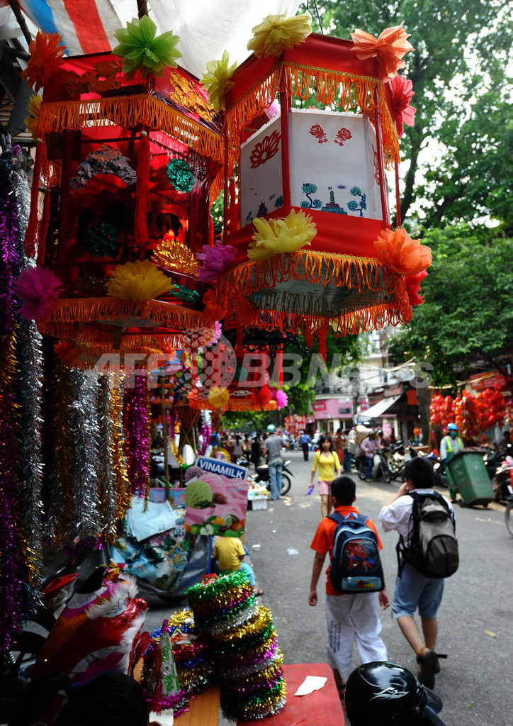 ニュース ライフ ハノイの街は中秋節に向けて大忙し、ベトナム 2010年9月22日 12:49 発信地:ハノイ/ベトナム [ アジア・オセアニア ベトナム ] このニュースをシェア ‹ › ❮ 12/13 ❯ ベトナム・ハノイ(Hanoi)の街は、中秋節に向けた準備で大忙しだ。中秋節には、赤いランタン(ちょうちん)が灯され、通りには子どもたち向けのお面や獅子の被り物、太鼓などを売る露店であふれる。今年の中秋節は22日。写真は、中秋節向けの玩具を売る店が並ぶ通り(2010年9月16日撮影)。(c)AFP/HOANG DINH Nam 画像作成中 ! 【9月22日 AFP】ベトナム・ハノイ(Hanoi)の街は、中秋節に向けた準備で大忙しだ。中秋節には、赤いランタン(ちょうちん)が灯され、通りには子どもたち向けのお面や獅子の被り物、太鼓などを売る露店であふれる。今年の中秋節は22日。(c)AFP ライフ 一覧へ> メディア・報道関係・法人の方向け 写真・動画 購入のお問合せ>