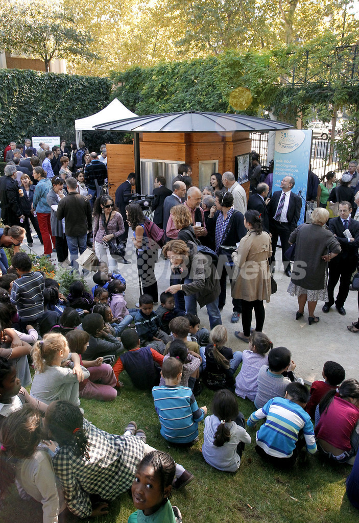 【9月23日 AFP】パリ(Paris)12区にあるルイイ庭園(Jardin de Reuilly)に、自由に炭酸水を飲める水飲み施設「ラ・ペティアント(La Petillante)」が設置され、21日に記念式典が行われた。炭酸水の水飲み施設はフランスでは初めて。庭園の開園時間中はいつでも利用できる。(c)AFP