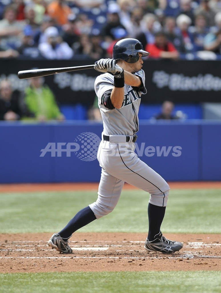 【9月24日 AFP】(一部更新)米大リーグ(MLB)、シアトル・マリナーズ(Seattle Mariners)のイチロー(Ichiro Suzuki)は23日、トロント・ブルージェイズ(Toronto Blue Jays)戦で5回にブルージェイズの先発投手ショーン・ヒル(Shawn Hill)から中前打を放ち、10年連続200安打を達成した。