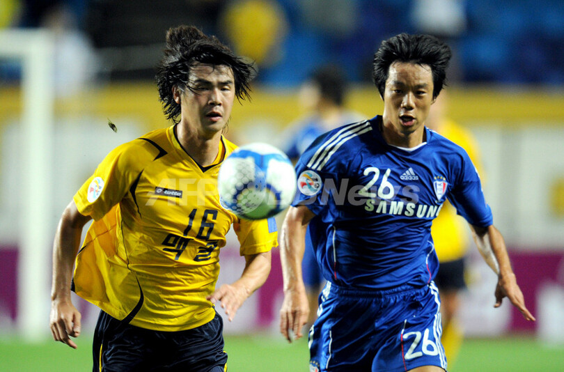第1戦を4-1で制していた城南一和(Seongnam Ilhwa、韓国)は敵地で水原三星ブルーウィングス(Suwon Bluewings、韓国)に0-2で敗れたが、合計4-3で準決勝に進んだ。(c)AFP