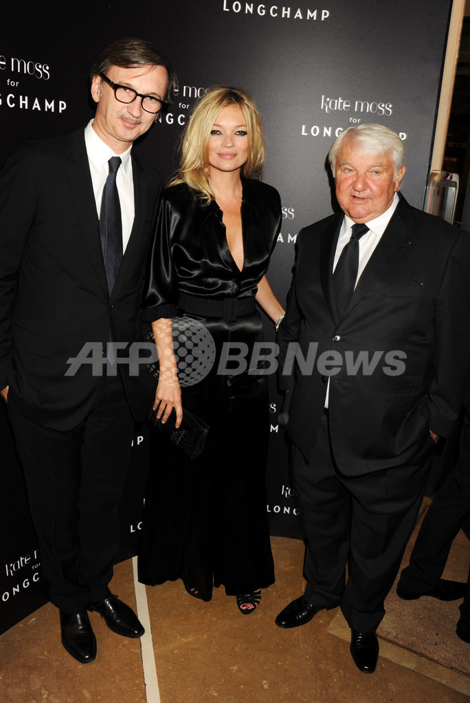 主役のケイト・モス(Kate Moss)は、光沢が美しいブラックのロングドレスを着用。ロンシャンのジャン・キャスグラン(Jean Cassegrain)CEOと肩を組み、カメラに向かってにっこりとポーズを決めた。