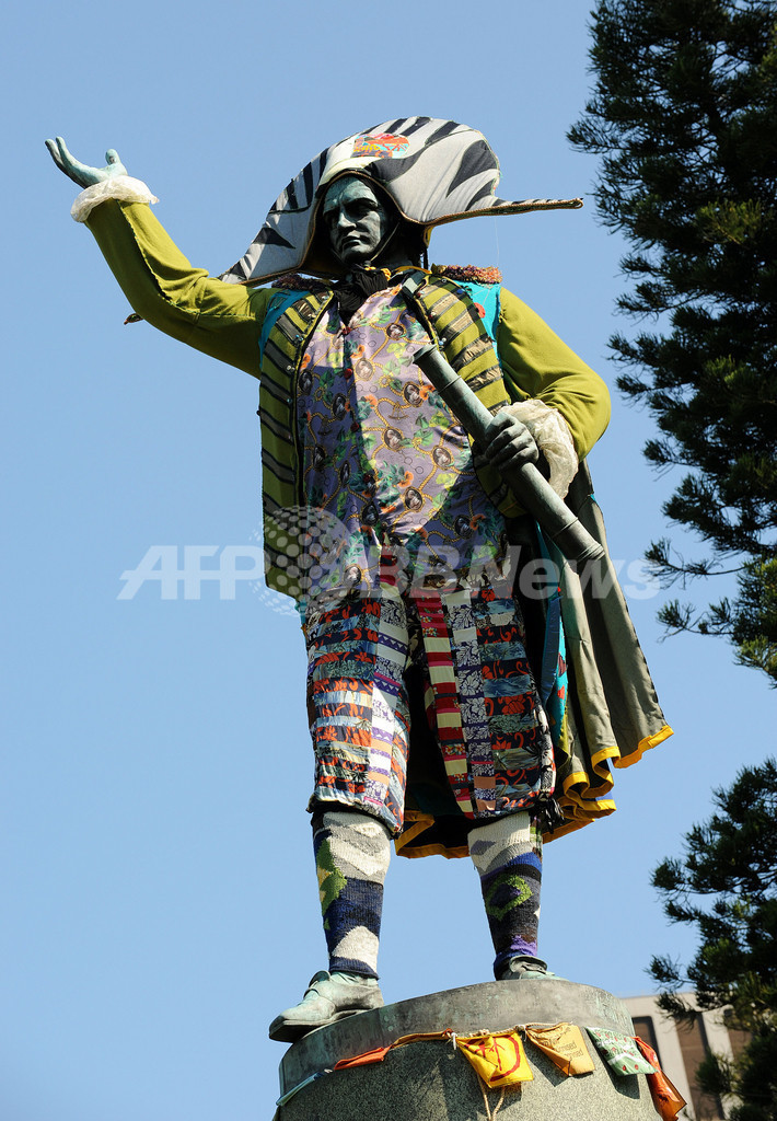 【9月28日 AFP】オーストラリア・シドニー(Sydney)で、23日から芸術祭「アート・アンド・アバウト・シドニー2010(Art & About Sydney 2010)」が開催されている。アートプロジェクト「シドニー・スタチューズ・プロジェクト!(Sydney Statues: Project!)」では、英国のビクトリア女王(Queen Victoria)、ビクトリア女王の夫アルバート公(Prince Albert)、クック船長(Captain Cook)など、シドニーの有名な8体の銅像に、地元のテキスタイルデザイナーや、ファッションデザイナー、コスチュームデザイナーの作った衣装が着せられている。会期は10月24日まで。(c)AFP