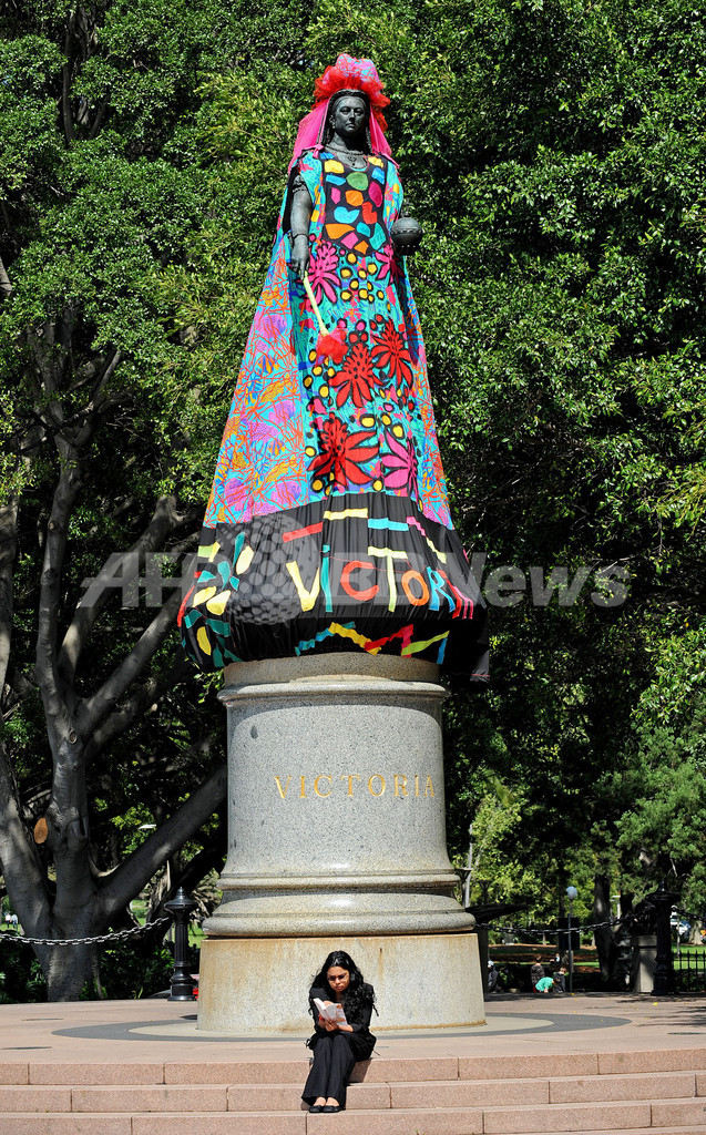 【9月28日 AFP】オーストラリア・シドニー(Sydney)で、23日から芸術祭「アート・アンド・アバウト・シドニー2010(Art & About Sydney 2010)」が開催されている。アートプロジェクト「シドニー・スタチューズ・プロジェクト!(Sydney Statues: Project!)」では、英国のビクトリア女王(Queen Victoria)、ビクトリア女王の夫アルバート公(Prince Albert)、クック船長(Captain Cook)など、シドニーの有名な8体の銅像に、地元のテキスタイルデザイナーや、ファッションデザイナー、コスチュームデザイナーの作った衣装が着せられている。会期は10月24日まで。(c)AFP