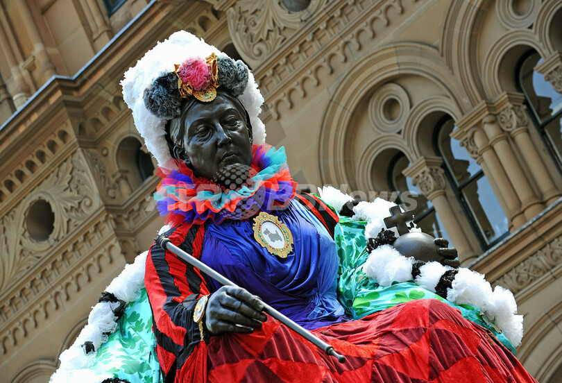 【9月28日 AFP】オーストラリア・シドニー(Sydney)で、23日から芸術祭「アート・アンド・アバウト・シドニー2010(Art & About Sydney 2010)」が開催されている。アートプロジェクト「シドニー・スタチューズ・プロジェクト!(Sydney Statues: Project!)」では、英国のビクトリア女王(Queen Victoria)、ビクトリア女王の夫アルバート公(Prince Albert)、クック船長(Captain Cook)など、シドニーの有名な8体の銅像に、地元のテキスタイルデザイナーや、ファッションデザイナー、コスチュームデザイナーの作った衣装が着せられている。会期は10月24日まで。(c)AFP