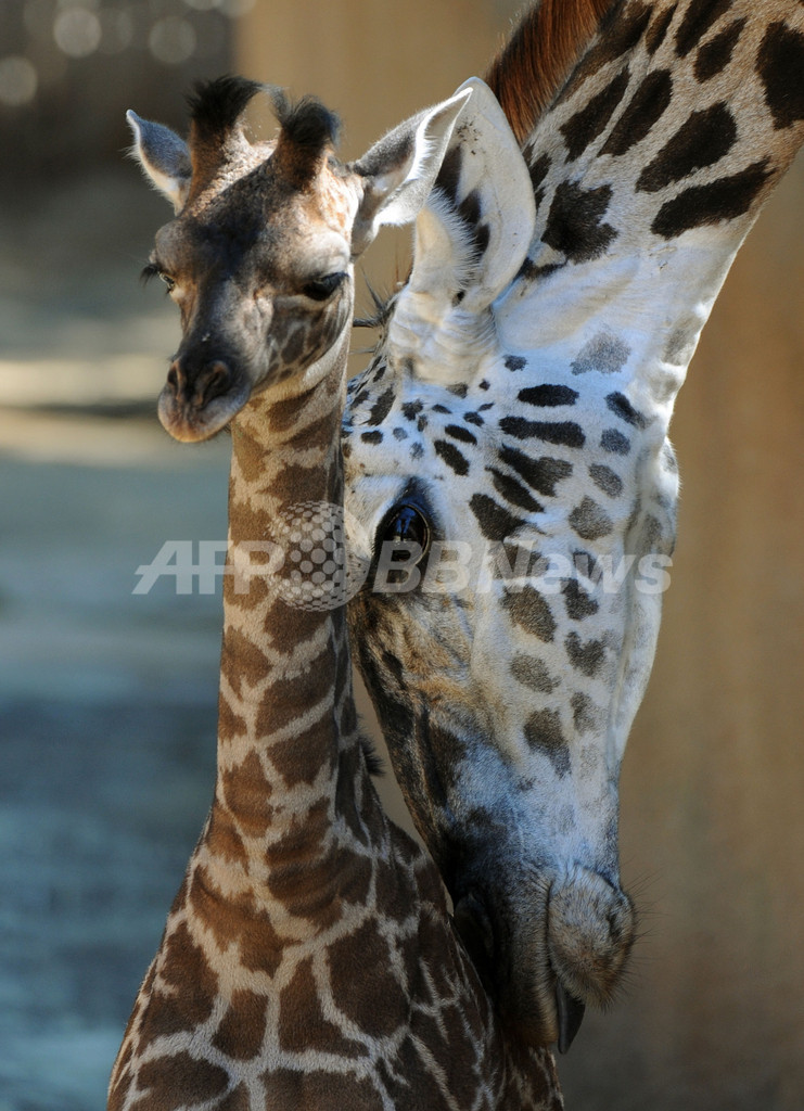 マサイキリンの赤ちゃん、米ロサンゼルス動物園
