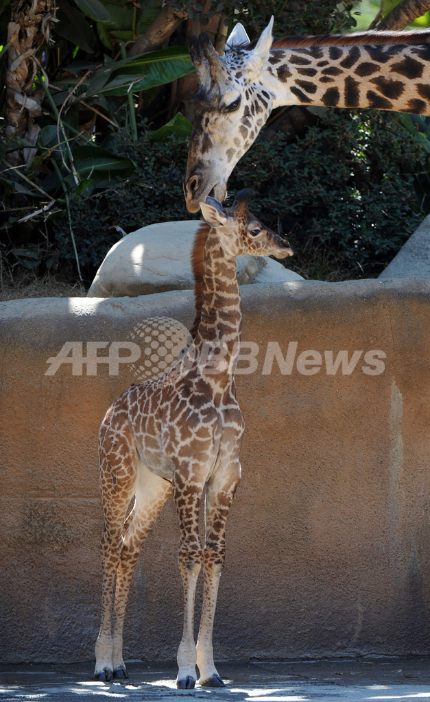 マサイキリンの赤ちゃん、米ロサンゼルス動物園