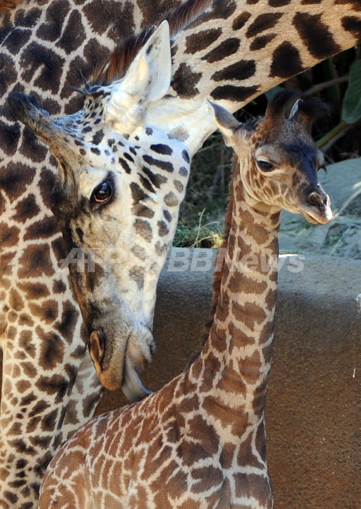 マサイキリンの赤ちゃん、米ロサンゼルス動物園