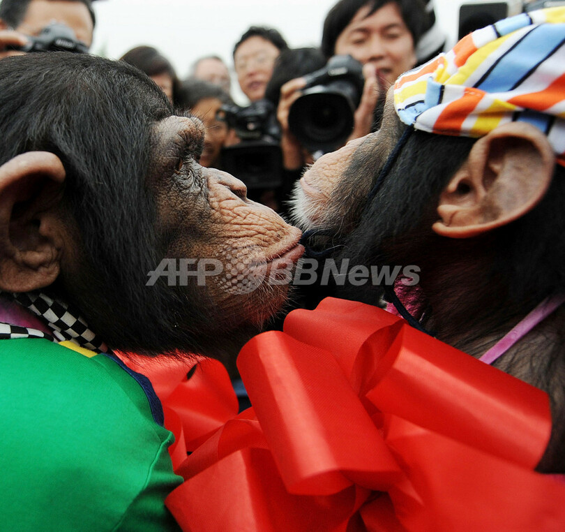ニュース ライフ こぼれ話 チンパンジーの結婚式、中国 2010年9月29日 11:52 発信地:合肥/中国 [ 中国・台湾 中国 ] このニュースをシェア ‹ › ❮ 2/7 ❯ 中国安徽(Anhui)省合肥(Hefei)の動物園で28日、オスのチンパンジー、ヤンヤン(Yangyang、4歳)とメスのチンパンジー、ワン・シン(Wan Xing、6歳)の結婚式が執り行われた。写真は、ヤンヤン(右)に口づけするワン・シン(2010年9月28日撮影)。(c)AFP 画像作成中 ! 【9月29日 AFP】中国安徽(Anhui)省合肥(Hefei)の動物園で28日、オスのチンパンジー、ヤンヤン(Yangyang、4歳)とメスのチンパンジー、ワン・シン(Wan Xing、6歳)の結婚式が執り行われた。(c)AFP ライフ 一覧へ> メディア・報道関係・法人の方向け 写真・動画 購入のお問合せ>