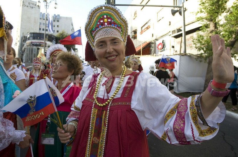 写真は、パレードに参加するロシア人のキリスト教巡礼者(2010年9月28日撮影)。(c)AFP/AHMAD GHARABLI