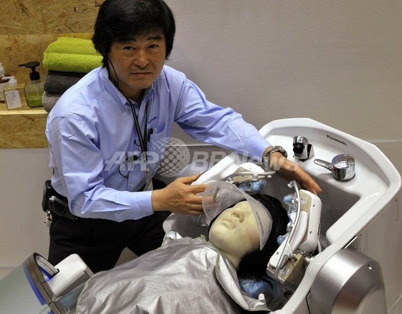 【10月1日 AFP】パナソニック(Panasonic)は9月29日~10月1日の日程で都内で開催された第37回国際福祉機器展(Home Care & Rehabilitation Exhibition)で、ロボット技術を応用して開発した、ベッドと車いすに相互に形状が変化する「電動ケアベッド」と、頭の形を3次元的にスキャニングして16個の「指先」で頭髪を洗浄する「洗髪ロボット」を公開した。2012年度の商品化を目指す。(c)AFP