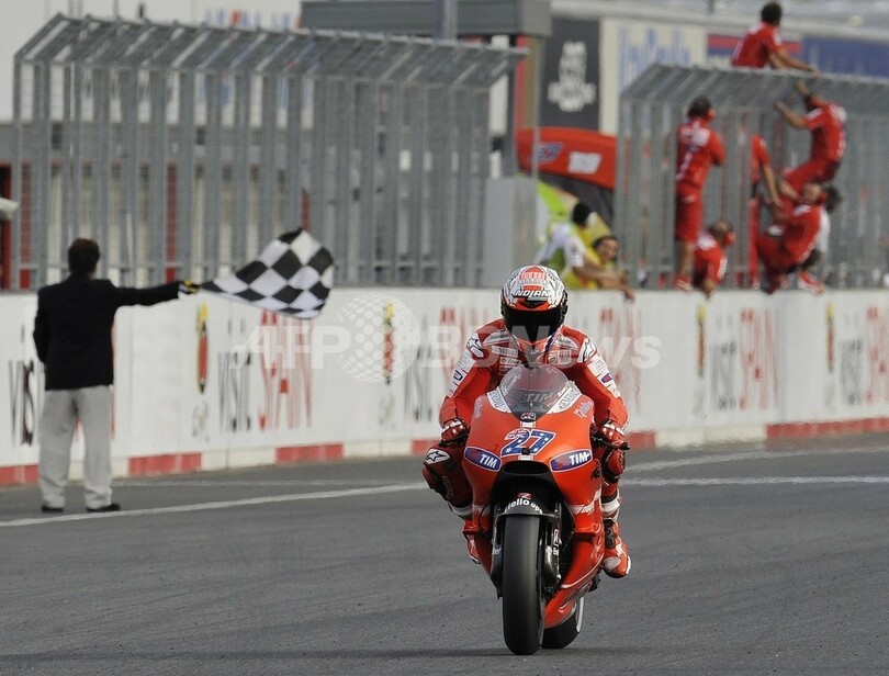 【10月3日 AFP】(4日写真追加)世界ロードレース選手権(WGP 2010)第14戦日本GP、MotoGPクラス決勝。3番グリッドからスタートしたドゥカティ(Ducati Team)のケーシー・ストーナー(Casey Stoner、オーストラリア)が、43分12秒226で第13戦のアラゴンGPに続いて優勝し、今季2勝利を挙げた。