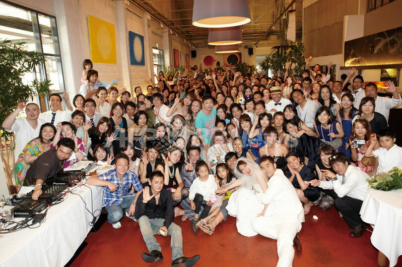 ほとんどの出席者がファッション関係なので、ありきたりなことをやっても面白くないと思いシンプルに。また、「いかにも」な感じが苦手なので、式は僕のイメージカラー「黒」にこだわりました。黒い大理石のチャペルにはじまり料理まですべて黒がテーマです。そして、式とのギャップも楽しんでもらいたかったので二次会は彼女のカラーで。表紙を担当する『Popteen』のモデルやタレントさんたちに大勢登場してもらい徹底的にギャルギャルしく楽しくやりました。