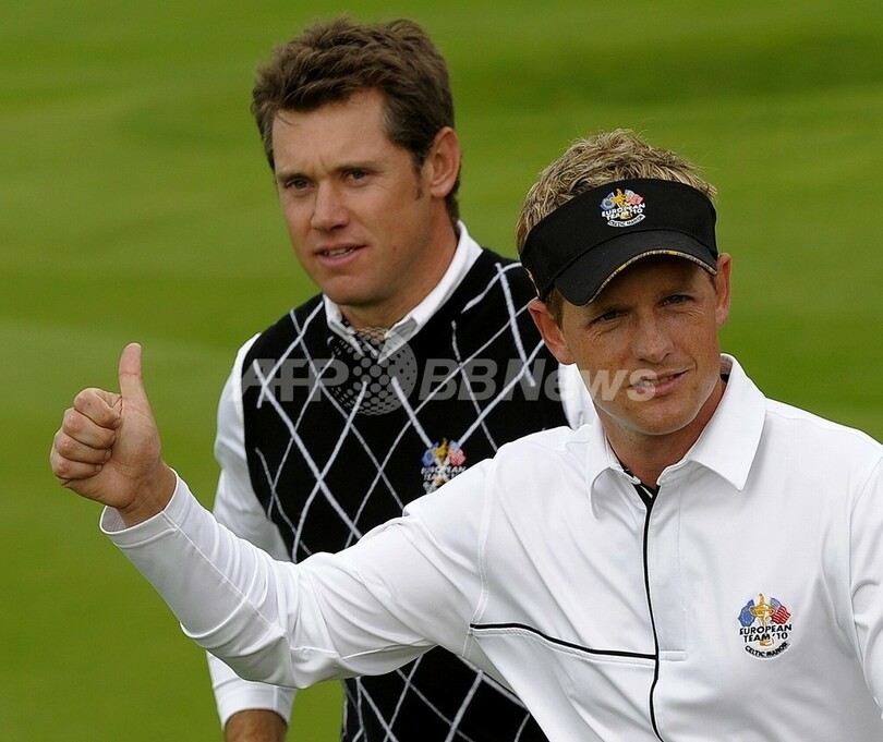 【10月4日 AFP】男子ゴルフの欧州と米国の対抗戦、第38回ライダーカップ(The 38th Ryder Cup)は3日、ウェールズのケルティックマナー(Celtic Manor)で3日目を行い、前日に日没サスペンデッドとなっていた第3セッション(フォアボール4試合とフォアサム2試合)は欧州が5勝1分けと圧勝。欧州は通算成績を9.5-6.5とし、米国を逆転した。