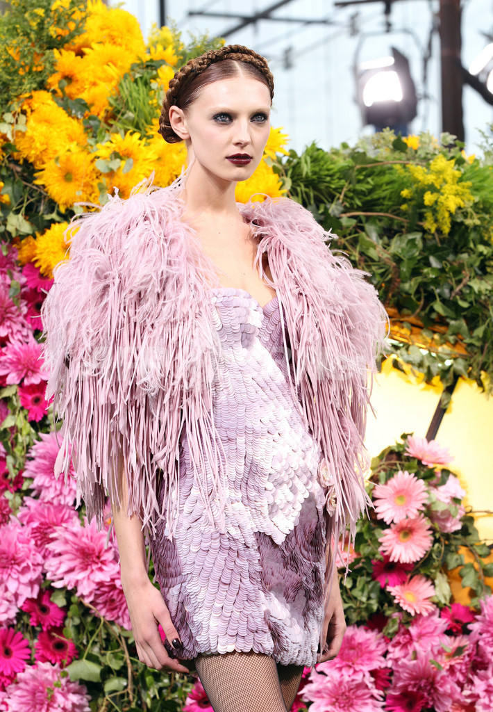 今シーズンのパリでは、ディーコン以外にも、ユニークなキャスティングが目立っている。「バレンシアガ(BALENCIAGA)」のニコラ・ゲスキエール(Nicolas Ghesquiere)はショーに現在妊娠5か月のミランダ・カー(Miranda Kerr)を起用。「ジャンポール・ゴルチエ(Jean Paul Gaultier)」でも、ロックバンド「ゴシップ(The Gossip)」のボーカルとして活躍するベス・ディットー(Beth Ditto)にスポットが当てられた。(c)AFP/Emma Charlton