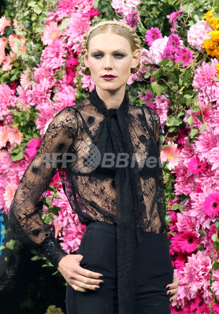 今シーズンのパリでは、ディーコン以外にも、ユニークなキャスティングが目立っている。「バレンシアガ(BALENCIAGA)」のニコラ・ゲスキエール(Nicolas Ghesquiere)はショーに現在妊娠5か月のミランダ・カー(Miranda Kerr)を起用。「ジャンポール・ゴルチエ(Jean Paul Gaultier)」でも、ロックバンド「ゴシップ(The Gossip)」のボーカルとして活躍するベス・ディットー(Beth Ditto)にスポットが当てられた。(c)AFP/Emma Charlton