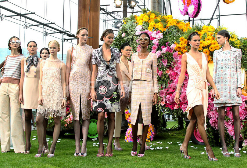 ショーはまるでガーデン・パーティのような雰囲気の中で開催。会場には、花で飾られたビートルやキャンピングカーなどの車がディスプレイされ、巨大な蝶の飾りが上空を舞った。モデルたちは、花飾りやスパンコール、繊細なレース刺繍をあしらった上品なルックに身を包んで次々と登場。ランウェイは始終ハッピーなムードに包まれていた。ユニークなセッティングについて「みんなにより近くで職人技を見て欲しかったから」とディーコン。入り組んだレースや刺繍が今回のコレクションに出発点になったという。