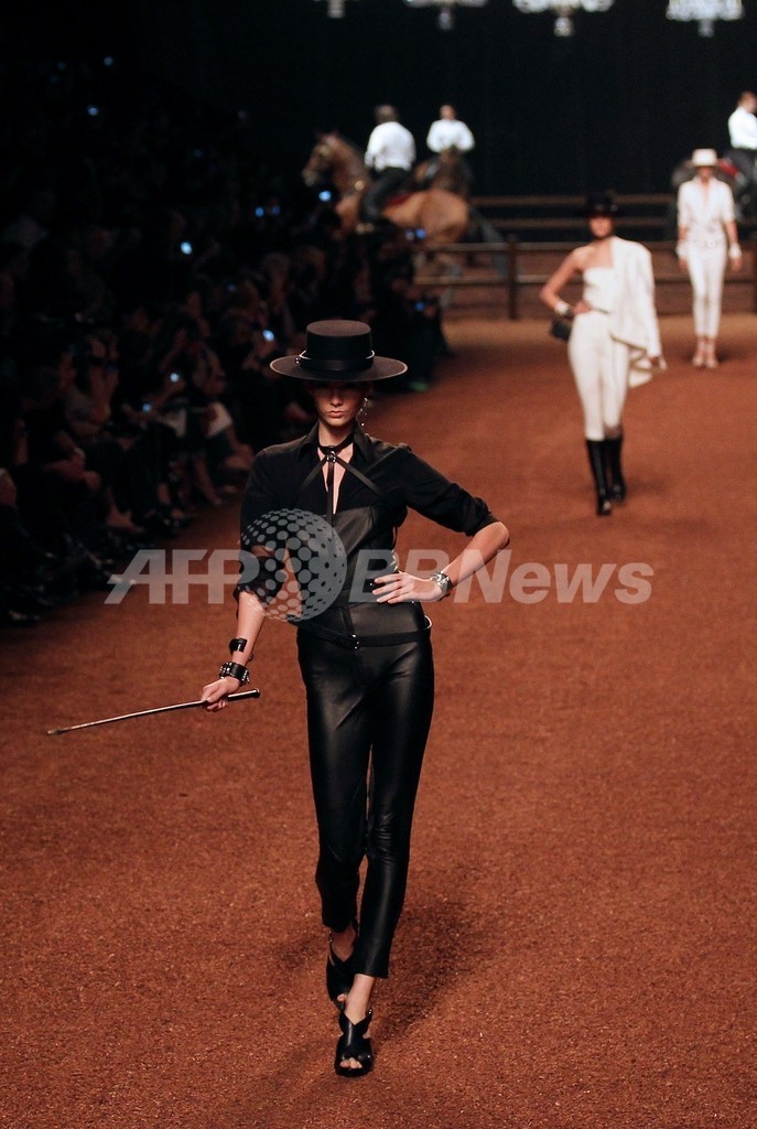 【10月7日 AFP】フランス・パリ市内で6日、ジャンポール・ゴルチエ(Jean Paul Gaultier)が手がける「エルメス(HERMES)」が11年春夏コレクションを発表した。パリコレ最終日でもあるこの日を区切りに、ゴルチエは7年間にわたりアーティスティックディレクターを務めてきた「エルメス」を去る。