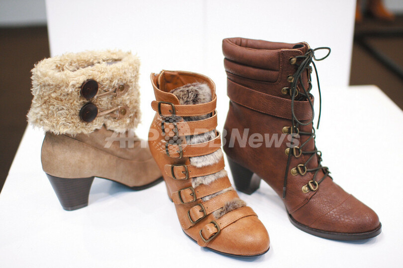 「スタイルは靴から決め、あくまでもカッコイイことがコンセプト」と企画担当の若山明愛さん。ファーやレースなどのパーツ使いと配色とでインパクトを付ける。ヒールも7〜9cmときっちりと高め。デザインからサンプルまで自分で手がけ、イメージを徹底する。