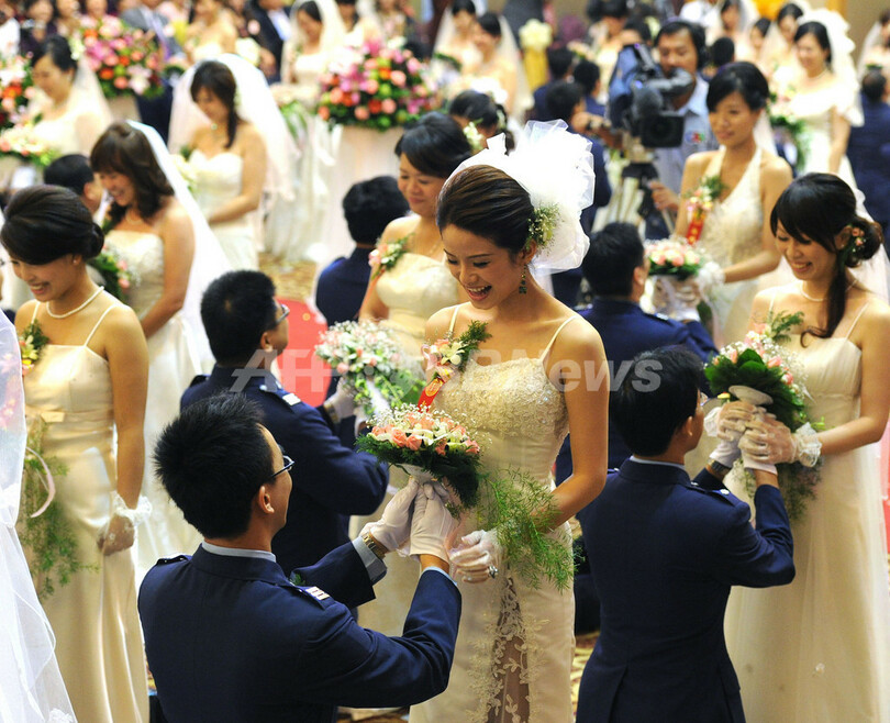 ニュース ライフ 台湾空軍、60組の集団結婚式 2010年10月10日 11:29 発信地:台湾 [ 中国・台湾 台湾 ] このニュースをシェア ‹ › ❮ 3/4 ❯ 台湾・台北(Taipei)で行われた台湾空軍の将校のカップル60組のための集団結婚式(2010年9月6日撮影)。(c)AFP/Sam YEH 画像作成中 ! 【10月10日 AFP】台湾・台北(Taipei)で6日、台湾空軍の将校のカップル60組が集団結婚式を挙げた。軍からは祝いの品として、ブルーレイ・DVDプレーヤー、真珠のネックレス、ティーセットなどが贈られた。(c)AFP ライフ 一覧へ> メディア・報道関係・法人の方向け 写真・動画 購入のお問合せ>