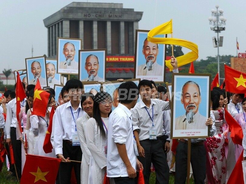 国旗と社会主義を表す鎚と鎌を描いた旗を引いたロシア製ヘリ10機が上空を通過して始まったパレードには公式発表で約4万人が参加した。共産党幹部らはホーチミン廟の上に設けられた席から、ひざを曲げずに脚を高く上げて行進する兵士や警察官らに手を振った。