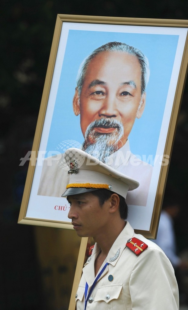国旗と社会主義を表す鎚と鎌を描いた旗を引いたロシア製ヘリ10機が上空を通過して始まったパレードには公式発表で約4万人が参加した。共産党幹部らはホーチミン廟の上に設けられた席から、ひざを曲げずに脚を高く上げて行進する兵士や警察官らに手を振った。