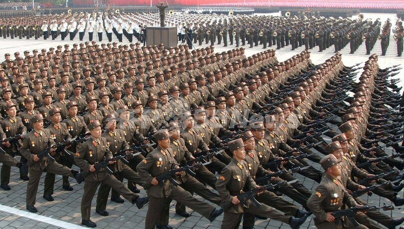 パレードは、ここ数年では最大規模で、一部の外国の報道機関も招待された。韓国の聯合ニュース(Yonhap News)は、北朝鮮国内で史上初めて軍のパレードがテレビ中継されたと報じた。パレードに参加した市民らはきょう初めて、次期後継者の姿を目にしたと考えられる。(c)AFP/Jung Ha-Won
