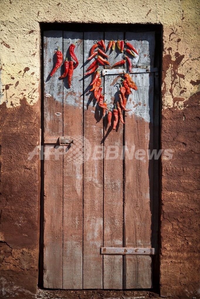 写真はハンガリー西部コロンタールで、アルミニウム精錬工場から流れ出した廃液で赤く染まった民家の扉(2010年10月10日撮影)。(c)AFP/BALINT PORNECZI