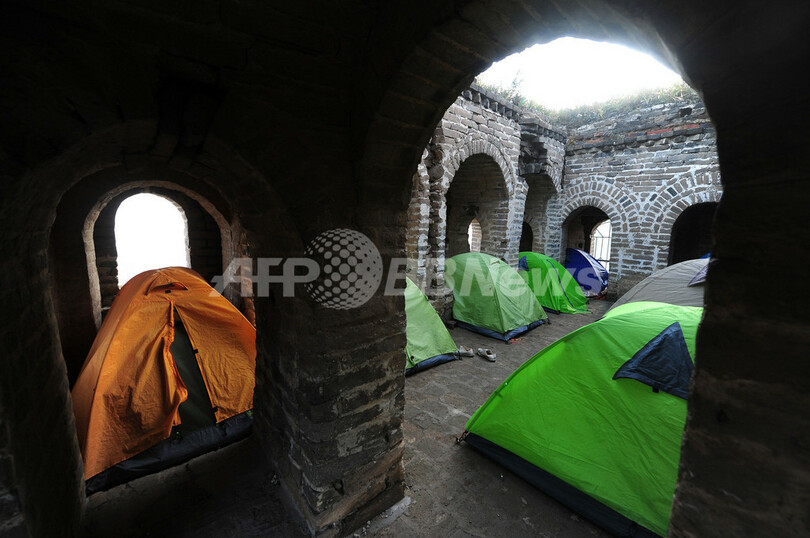 八達嶺地区の管理に以前関わっていた北京・精華大学(Tsinghua University)の講師によると、万里の長城でテント宿泊する観光客も多く、石畳の間にテント設置用の杭が残っていることもあるという。しかし、万里の長城内で眠ることを禁止する規則は存在しない。