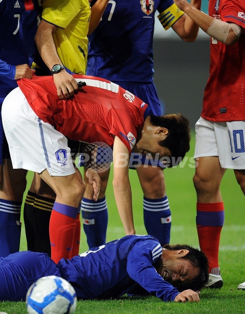 スポーツ サッカー 日本人選手 日本 敵地で韓国とドロー 2010年10月13日 7:49 発信地:ソウル/韓国 [ 韓国・北朝鮮 韓国 ] このニュースをシェア ‹ › ❮ 2/5 ❯ サッカー国際親善試合、韓国対日本。韓国の李青龍(Lee Chung-Yong、イ・チョンヨン)と衝突し、ピッチに倒れる日本の駒野友一(Yuichi Komano、下)。(2010年10月12日撮影)(c)AFP/JUNG YEON-JE 画像作成中 ! 【10月13日 AFP】サッカー日本代表は12日、敵地のソウルで韓国代表と国際親善試合を行い、0-0で引き分けた。(c)AFP サッカー 一覧へ> メディア・報道関係・法人の方向け 写真・動画 購入のお問合せ>