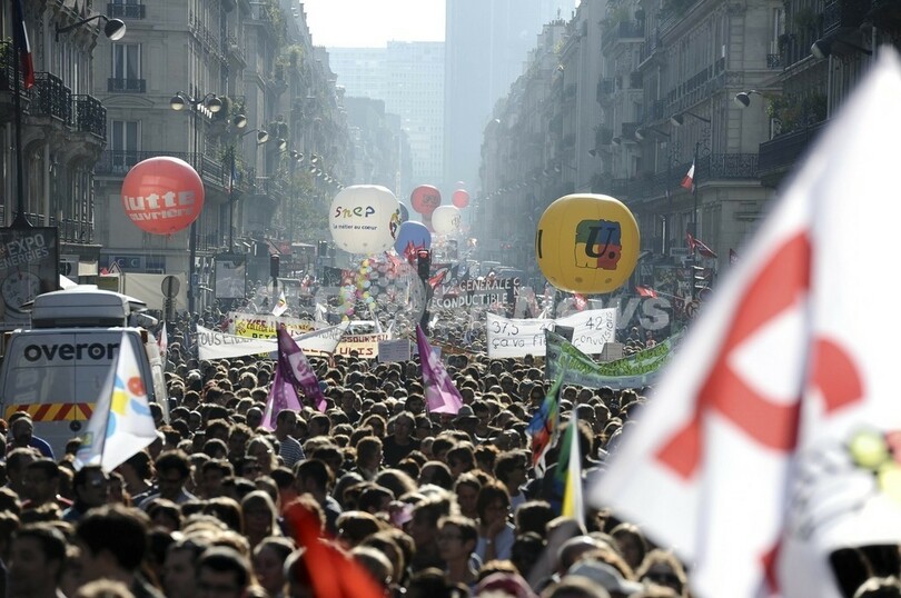 【10月13日 AFP】フランス全土で12日、ニコラ・サルコジ(Nicolas Sarkozy)大統領が推進する年金制度改革法案に反対する4回目のデモとストライキが実施された。