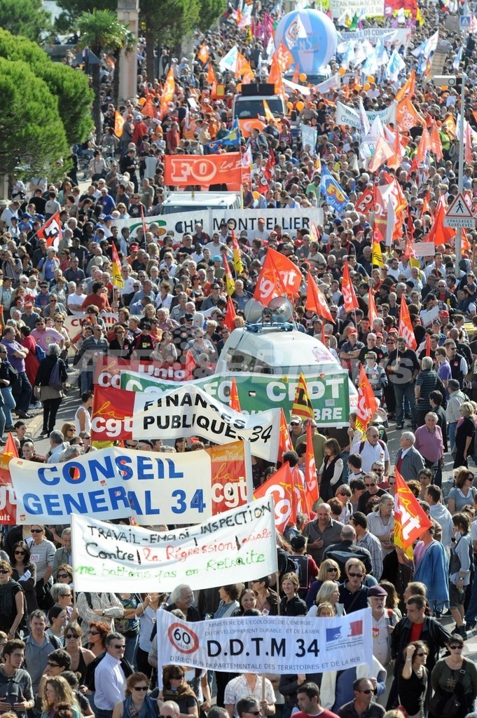 写真はモンペリエ(Montpellier)でのデモ行進(2010年10月12日撮影)。(c)AFP/PASCAL GUYOT