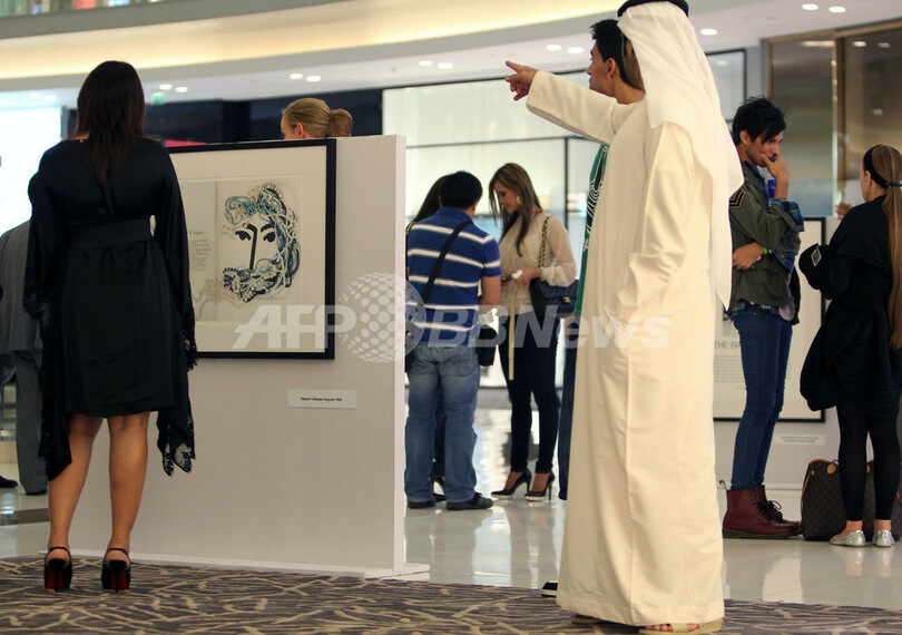 「The Bazaar Years 1951-1964」と題された同展では、ウォーホルがファッション誌「ハーパース・バザー(Harper’s Bazaar)」のために手がけた作品を展示。モール内の広い通路に設けられた展示スペースには、一般買い物客が足を止めて、米国外で初公開となる作品を鑑賞した。(c)AFP