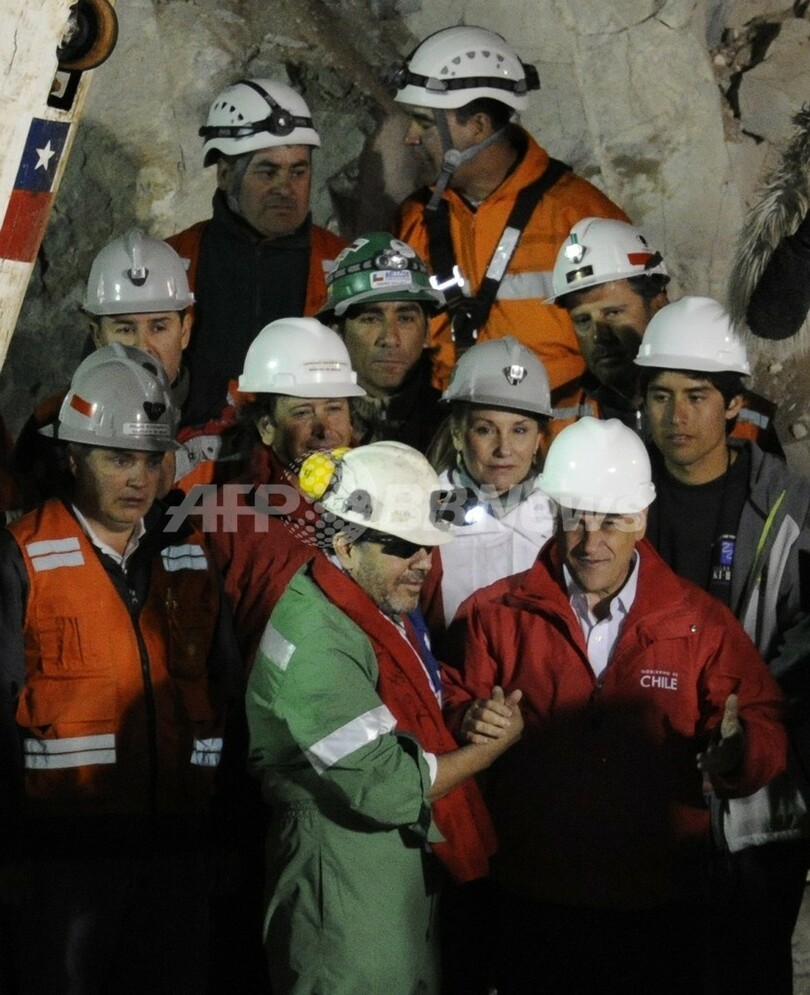 【10月14日 AFP】(写真追加、一部更新)チリ北部のサンホセ(San Jose)鉱山で13日夜(日本時間14日午前)、地下に閉じこめられていた最後の鉱山作業員でリーダーのルイス・ウルスア(Luis Urzua)さんが救出され、33人全員が無事生還した。
