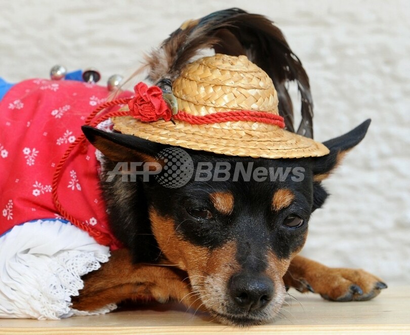 写真は独南部ハイリンク(Hailing)で、バイエルン風犬用ウェアを着る飼い犬のチワワ(2010年10月12日撮影)。(c)AFP/CHRISTOF STACHE