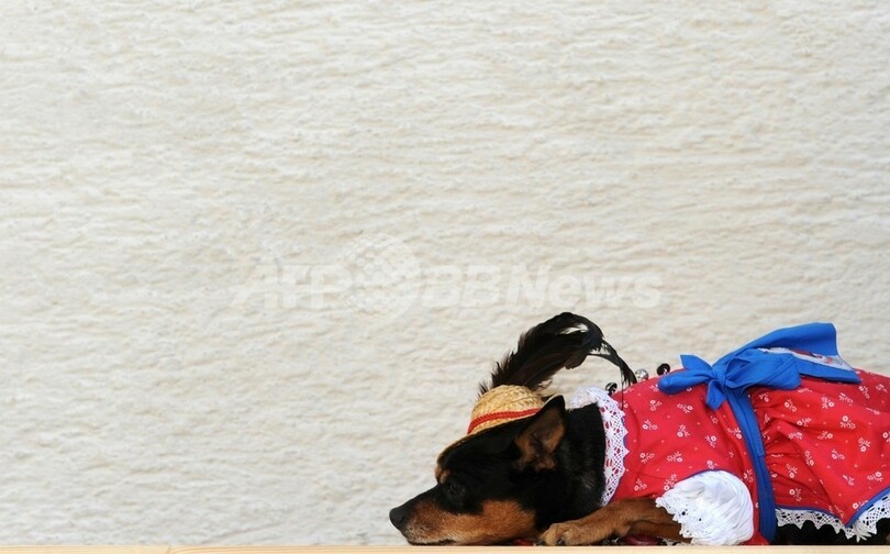 写真は独南部ハイリンク(Hailing)で、バイエルン風犬用ウェアを着る飼い犬のチワワ(2010年10月12日撮影)。(c)AFP/CHRISTOF STACHE