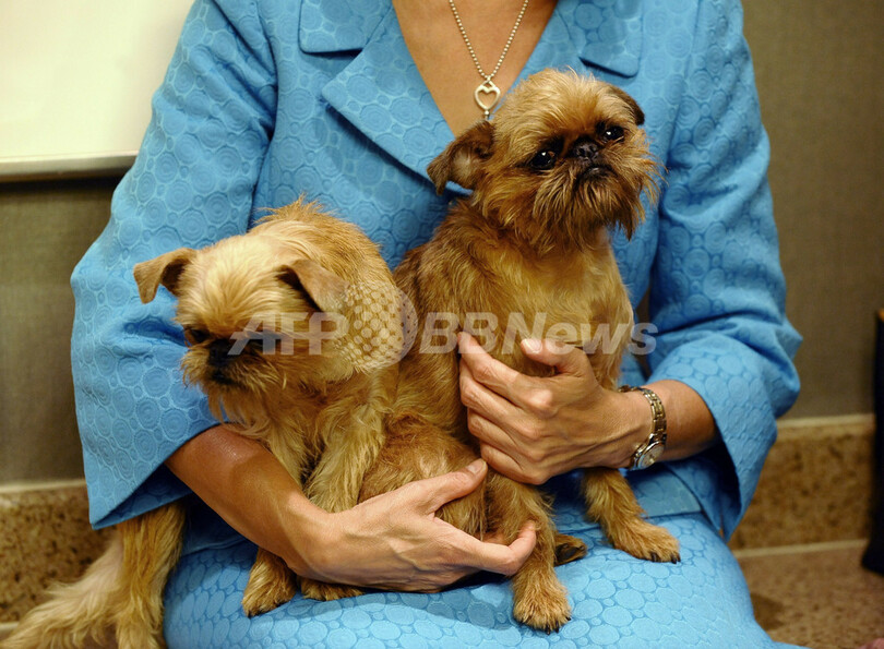 写真は、「ミート・ザ・ブリード」開催前の記者発表会に登場した2匹のブラッセルズグリフォン(2010年10月13日撮影)。(c)AFP/TIMOTHY A. CLARY