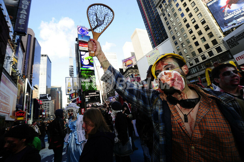 ニュース ライフ こぼれ話 マンハッタンがゾンビの街に 2010年10月17日 9:19 発信地:ニューヨーク/米国 [ 北米 米国 ] このニュースをシェア ‹ › ❮ 4/64 ❯ ニューヨーク市(New York City)のマンハッタン(Manhattan)で16日、毎年恒例のゾンビの祭典「ゾンビコン(Zombiecon)」が開催され、数百人のゾンビたちが街を練り歩き、バーやパブなどに顔を出した。このイベントは、ことしで6回目(2010年10月16日撮影)。(c)AFP/Emmanuel Dunand 画像作成中 ! 【10月17日 AFP】ニューヨーク市(New York City)のマンハッタン(Manhattan)で16日、毎年恒例のゾンビの祭典「ゾンビコン(Zombiecon)」が開催され、数百人のゾンビたちが街を練り歩き、バーやパブなどに顔を出した。このイベントは、ことしで6回目。(c)AFP ライフ 一覧へ> メディア・報道関係・法人の方向け 写真・動画 購入のお問合せ>